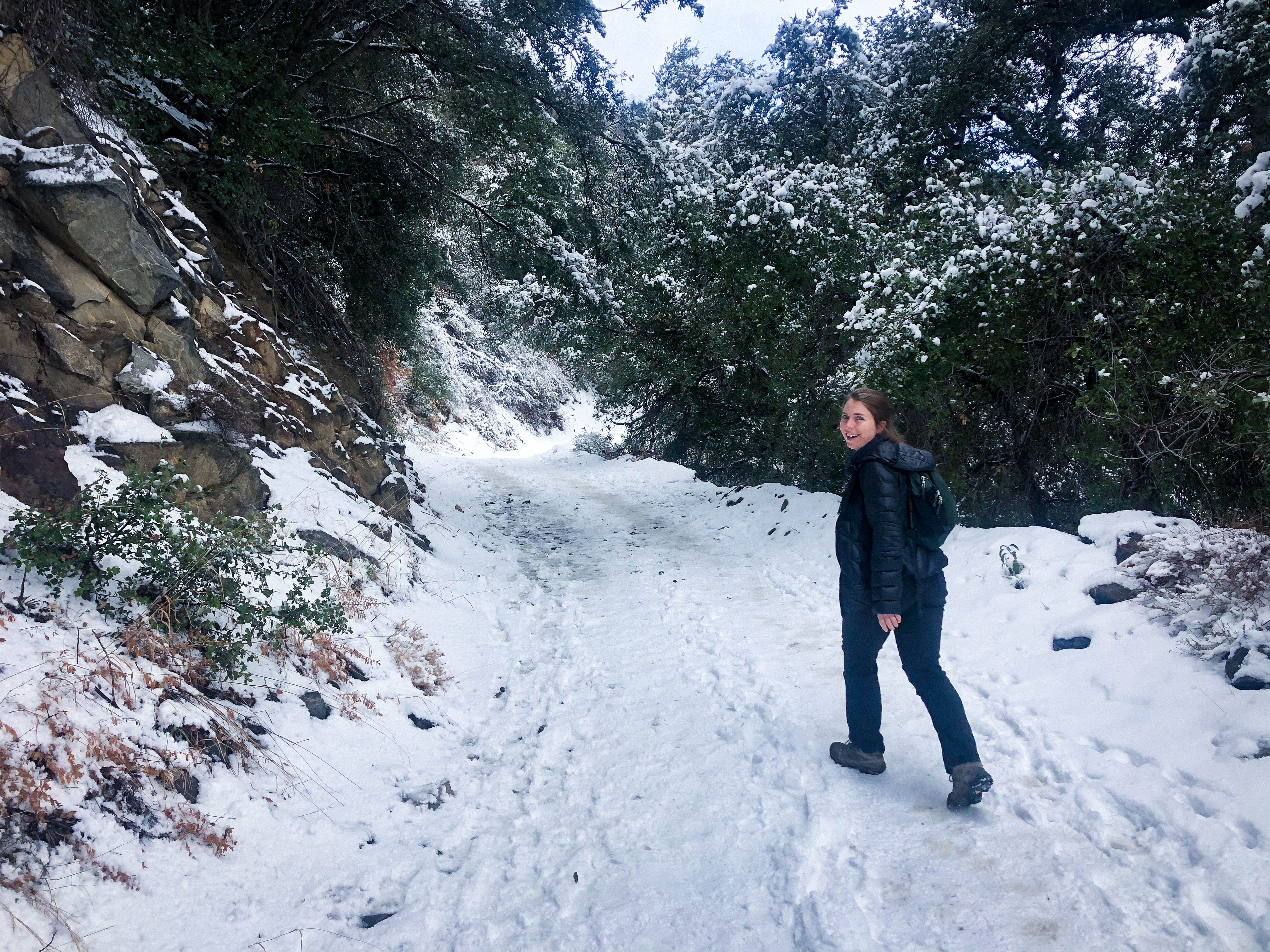 Last weekend I swam in the Pacific Ocean. This weekend I hiked through the snow.